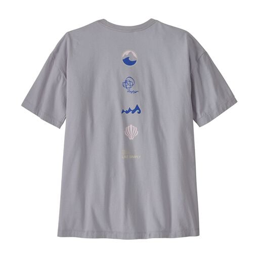 Long Way ‘Round artwork takes us back graphically. Look for our circa ’95 oval logo; the cult-favorite Rhythm™ design for climbing clothes; an early surfboard graphic; our Water Girl® shell and more. We screen printed the graphic on our Women’s Long Way ‘Round Oversized Organic T-Shirt, which is 100% organic cotton jersey and made in a Fair Trade Certified™ factory.
