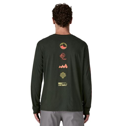 Long Way ‘Round artwork takes us back graphically. Look for our circa ’95 oval logo; the cult-favorite Rhythm™ design for climbing clothes; an early surfboard graphic; our Water Girl® shell and more. We screen printed the graphic on our Men’s Long-Sleeved Long Way ‘Round Organic T-Shirt, which is 100% organic cotton jersey and made in a Fair Trade Certified™ factory.
