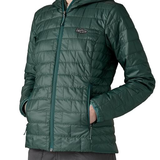 Warm, windproof, water-resistant—the versatile Nano Puff® Fitz Roy Trout Hoody uses incredibly lightweight, highly compressible insulation for easy packability and reliable warmth. Performance details include a hood that fits over a cap, zip handwarmer pockets, an interior zip pocket and a drop-tail hem with a drawcord. Made in a Fair Trade Certified™ factory.