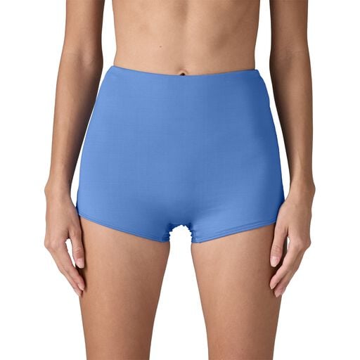 These high-rise surf shorts let you have more fun; they’re made from either 83% recycled nylon/17% spandex jersey (solids) or 83% recycled polyester/17% spandex jersey (prints). Hidden elastic at the waist and full bum coverage provide secure comfort both in and out of the water. Made in a Fair Trade Certified™ factory.